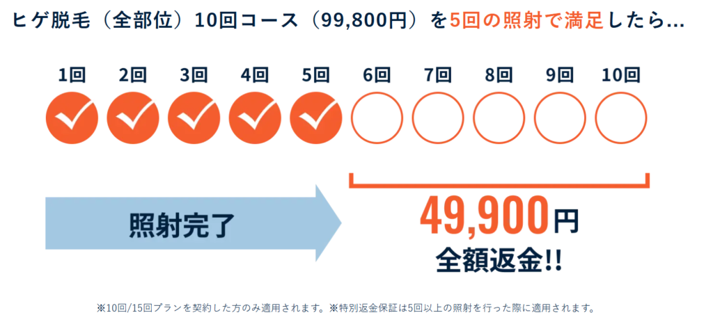 さらに5回の照射で満足したら残りの全額返金対応も可能なのでノーリスク。